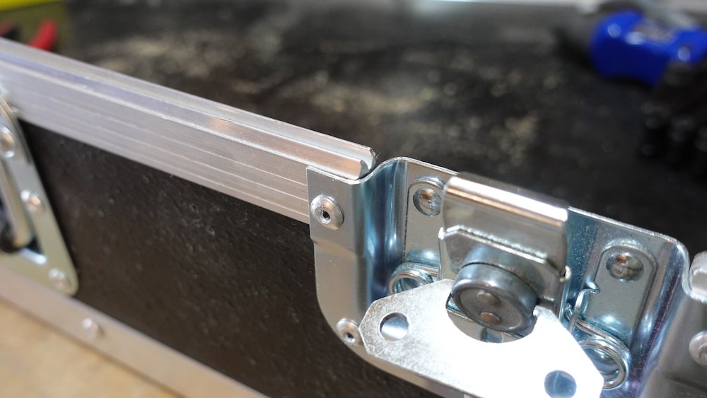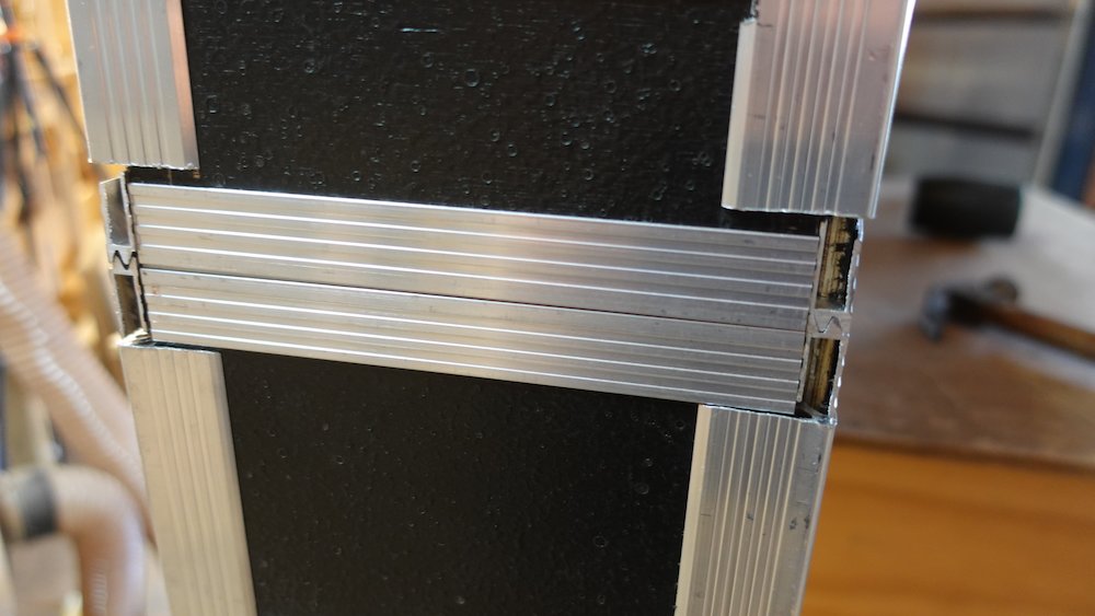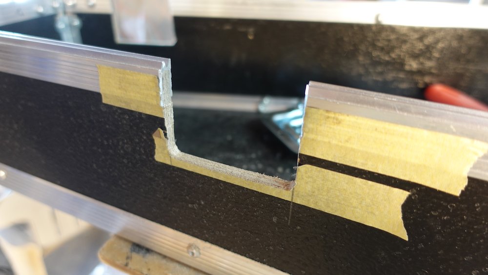 Cut 16x16 cutouts in the bottom corners, to avoid aluminium channel and rivets