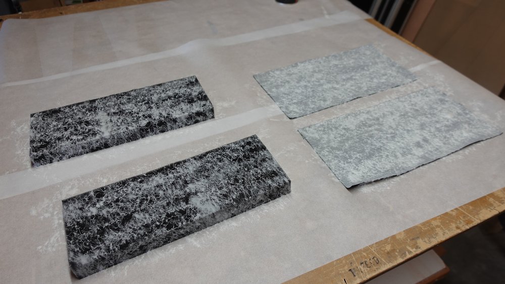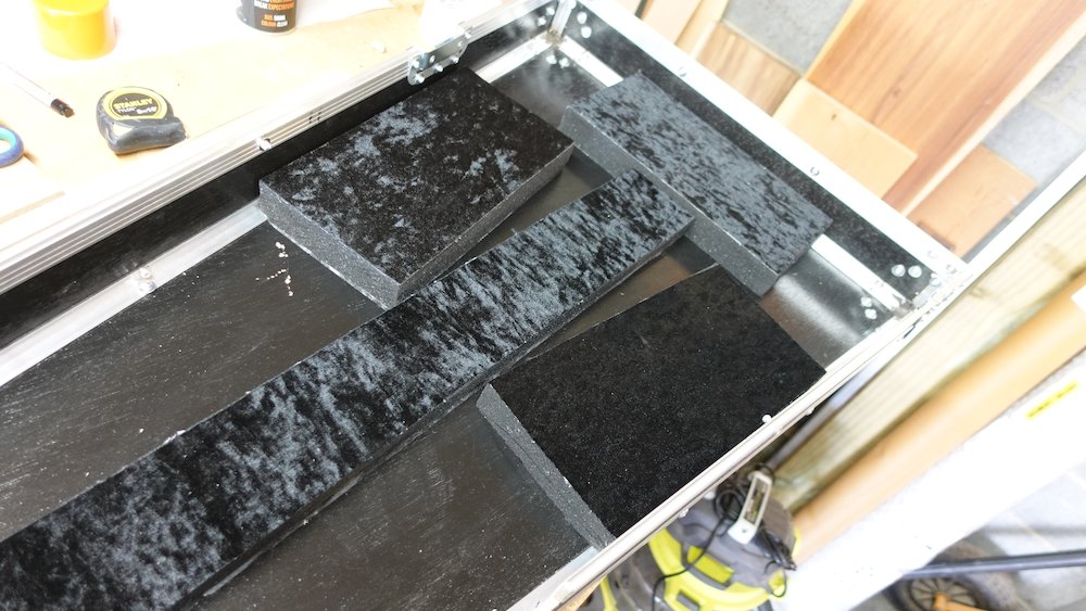 cut three 50mm pieces, 150x300mm, two positioned either side of strings, one between bridge and tail