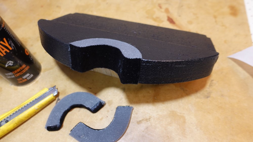 2x upper bout cushions, will be approx 300x105, with a cutout to clear the heel base cushion