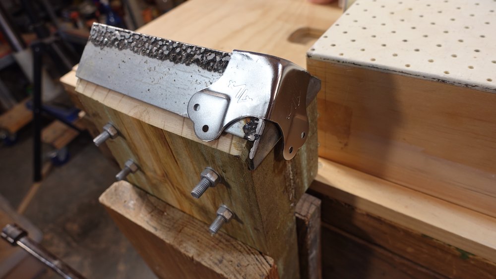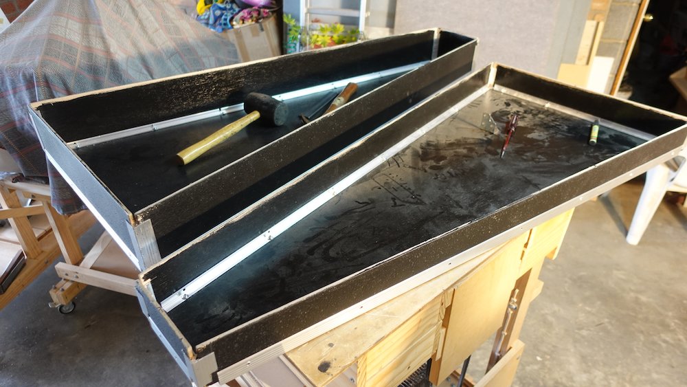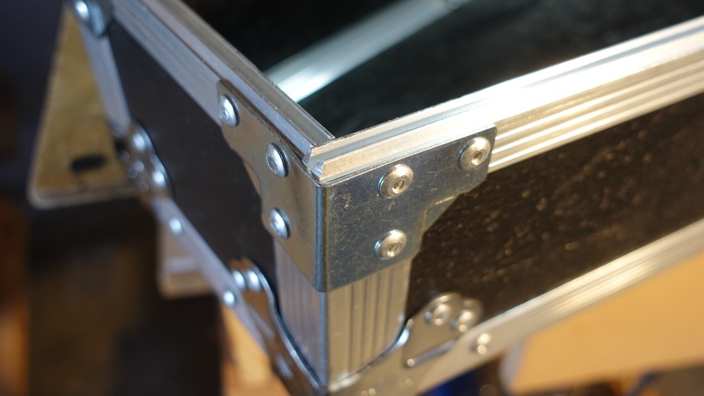 Cut 16x16 cutouts in the bottom corners, to avoid aluminium channel and rivets